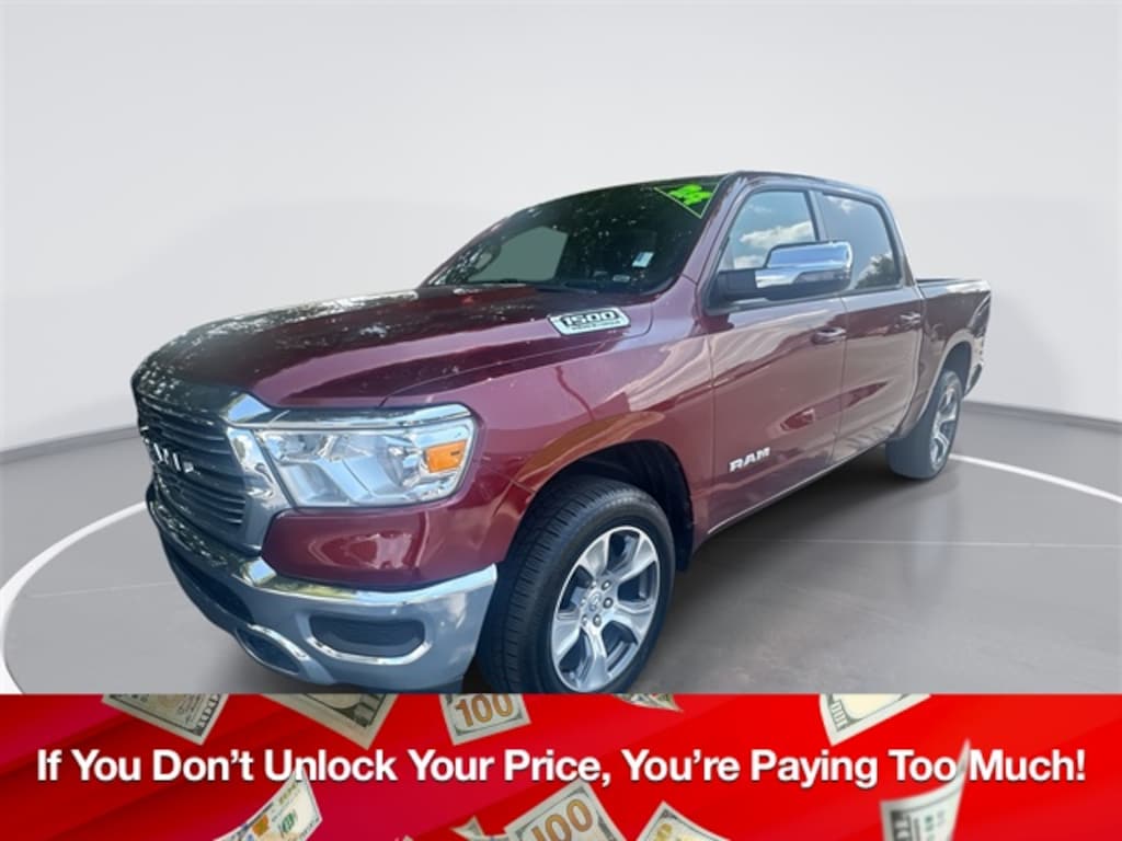 Ram Certified, 10 Speakers, 3 Rear Seat Head Restraints, 3.21 Rear Axle Ratio, 4 Way Front Headrests, 4-Wheel Disc Brakes, 48V Belt Starter Generator, 4G LTE Wi-Fi Hot Spot, ABS brakes, Air Conditioning, Alloy wheels, AM/FM radio: SiriusXM with 360L, Apple CarPlay, Apple CarPlay/Android Auto, Audio memory, Auto-dimming door mirrors, Auto-Dimming Exterior Driver Mirror, Auto-dimming Rear-View mirror, Automatic temperature control, Brake assist, Bumpers: chrome, Chrome Exterior Mirrors, Compass, Connected Travel & Traffic Services, Connectivity - US/Canada, Convex Wide-Angle Exterior Mirror Insert, Delay-off headlights, Driver door bin, Driver Seat Memory, Driver vanity mirror, Dual front impact airbags, Dual front side impact airbags, Electronic Stability Control, Exterior Mirrors Courtesy Lamps, Exterior Mirrors w/Heating Element, Exterior Mirrors w/Memory, Exterior Mirrors w/Supplemental Signals, Exterior Parking Camera Rear, For Details, Visit DriveUconnect.com, For More Info, Call 800-643-2112, Front anti-roll bar, Front Center Armrest w/Storage, Front dual zone A/C, Front fog lights, Front License Plate Bracket, Front reading lights, Front Seat Back Map Pockets, Front wheel independent suspension, Fully automatic headlights, Garage door transmitter, Global Telematics Box Module (TBM), Google Android Auto, GPS Navigation, HD Radio, Heated door mirrors, Heated Front Seats, Heated front seats, Heated Steering Wheel, Heated steering wheel, Illuminated entry, Integrated Voice Command w/Bluetooth, Leather steering wheel, Leather Trim 40/20/40 Bench Seat, Low tire pressure warning, Manufacturer's Statement of Origin, Memory seat, Navigation System, Occupant sensing airbag, Outside temperature display, Overhead airbag, Overhead console, Panic alarm, Passenger door bin, Passenger vanity mirror, Power 2-Way Driver Lumbar Adjust, Power 2-Way Passenger Lumbar Adjust, Power 8-Way Driver & Passenger Seats, Power door mirrors, Power driver seat, Power passenger seat, Power steering, Power windows, Power-Folding Mirrors, Quick Order Package 27H Laramie, Radio data system, Radio: Uconnect 5 Nav w/8.4" Display, RAM Grille Badge - Chrome, Rear 60/40 Folding Seat, Rear anti-roll bar, Rear seat center armrest, Rear step bumper, Remote keyless entry, Security system, SiriusXM Radio Service, SiriusXM w/360L, Speed control, Split folding rear seat, Steering wheel mounted audio controls, Tachometer, Telescoping steering wheel, Tilt steering wheel, Traction control, Trip computer, Turn signal indicator mirrors, Variably intermittent wipers, Ventilated Front Seats, Ventilated front seats, Voltmeter, Wheels: 18" x 8" Aluminum Base Painted, Wheels: 20" x 9" Premium Paint/Polished.