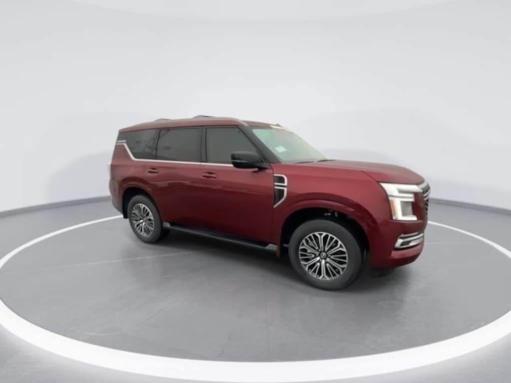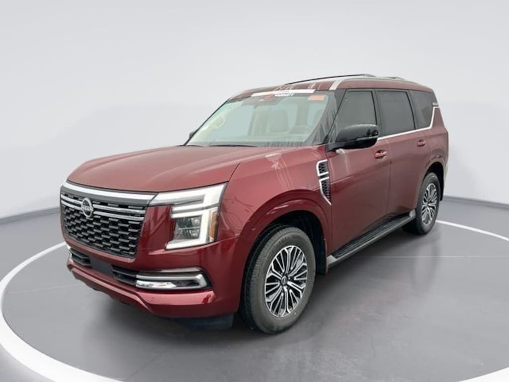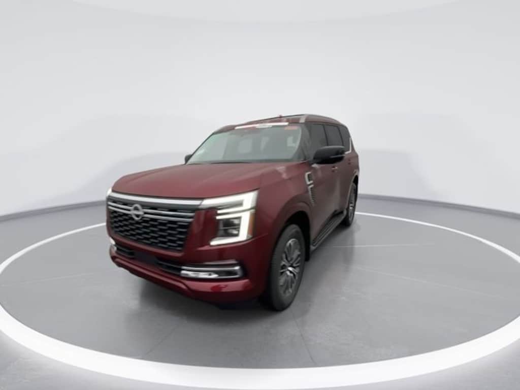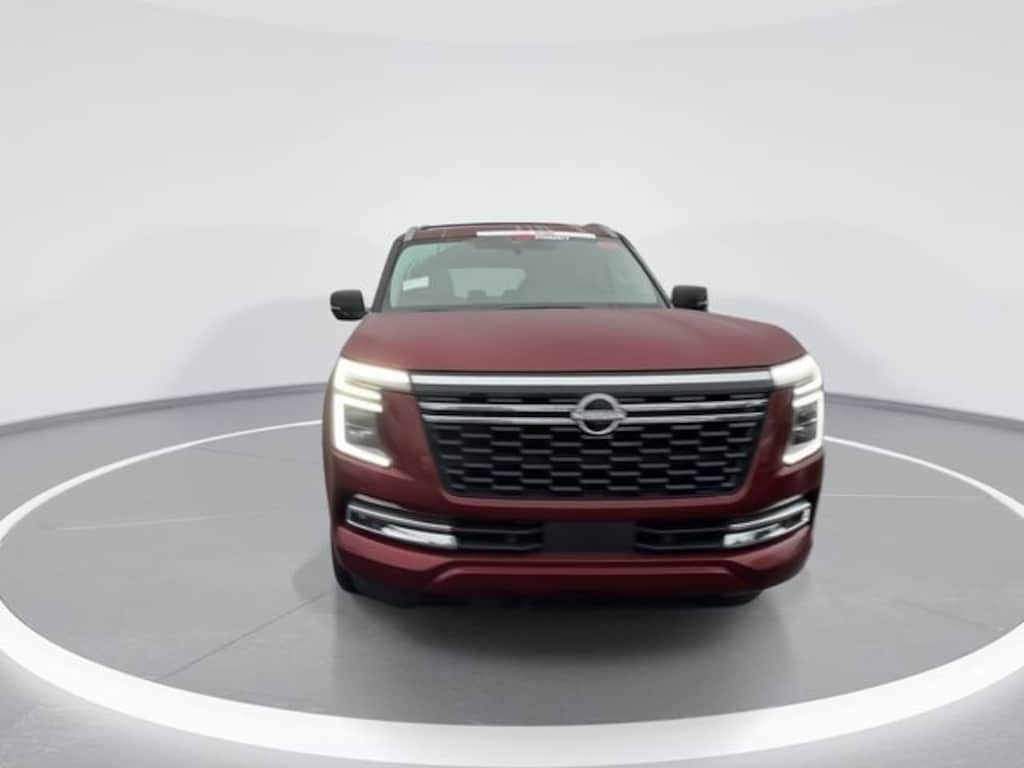 4WD, 12 Speakers, 3rd row seats: split-bench, 4-Wheel Disc Brakes, ABS brakes, Air Conditioning, Alloy wheels, AM/FM radio: SiriusXM w/360L, Anti-whiplash front head restraints, Apple CarPlay/Android Auto, Auto High-beam Headlights, Auto tilt-away steering wheel, Auto-dimming door mirrors, Auto-dimming Rear-View mirror, Auto-leveling suspension, Automatic temperature control, Brake assist, Bumpers: body-color, Carpeted Floor Mats with Captain Chairs, Climate Controlled Heated and Ventilated Front Seats, Compass, Cross Bars, Delay-off headlights, Driver door bin, Driver vanity mirror, Dual front impact airbags, Dual front side impact airbags, Electronic Stability Control, Emergency communication system: NissanConnect Services, Four wheel independent suspension, Front anti-roll bar, Front Bucket Seats, Front Center Armrest, Front dual zone A/C, Front fog lights, Front reading lights, Fully automatic headlights, Garage door transmitter: HomeLink, Genuine wood dashboard insert, Heated door mirrors, Heated front seats, Heated rear seats, Heated steering wheel, HVAC memory, Illuminated entry, Illuminated Kick Plates, Knee airbag, Leather steering wheel, Low tire pressure warning, Memory seat, Navigation system: Google Maps, Occupant sensing airbag, Outside temperature display, Overhead airbag, Overhead console, Panic alarm, Passenger door bin, Passenger vanity mirror, Power door mirrors, Power driver seat, Power Liftgate, Power moonroof, Power passenger seat, Power steering, Power windows, Premium Paint, Quilted Leather Seat Trim, Radio: NissanConnect with SiriusXM 360L, Rain sensing wipers, Rear air conditioning, Rear anti-roll bar, Rear Bumper Protector, Rear reading lights, Rear window defroster, Rear window wiper, Reclining 3rd row seat, Remote keyless entry, Security system, Speed control, Speed-sensing steering, Speed-Sensitive Wipers, Splash Guards, Split folding rear seat, Spoiler, Steering wheel memory, Steering wheel mounted audio controls, Tachometer, Telescoping steering wheel, Tilt steering wheel, Traction control, Trip computer, Turn signal indicator mirrors, Variably intermittent wipers, Ventilated front seats, Voltmeter, Wheels: 20" x 8.5J Machined and Painted Alloy, 4WD.