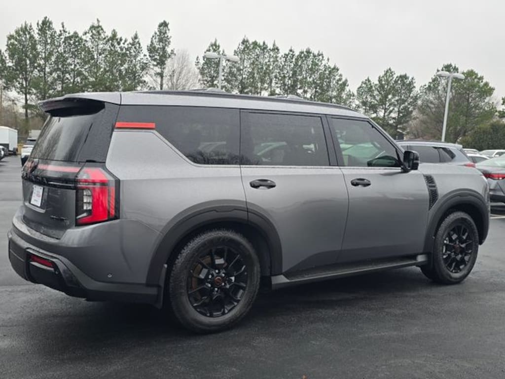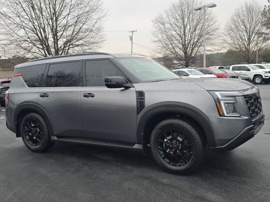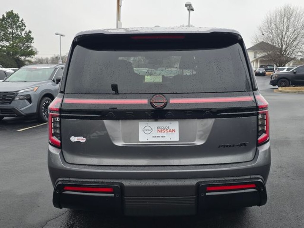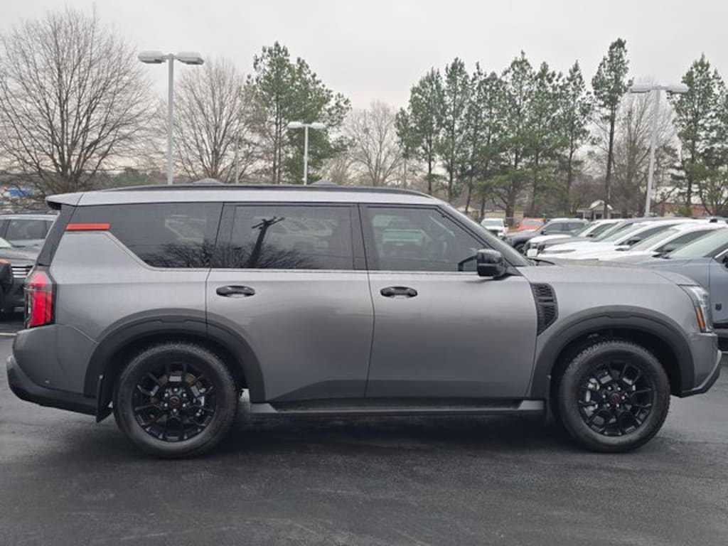 4WD, 12 Speakers, 2nd Row Center Console with Two Cupholders, 2nd Row Outboard Captain's Chairs with Armrests, 3rd row seats: split-bench, 4-Wheel Disc Brakes, ABS brakes, Adaptive suspension, Air Conditioning, Alloy wheels, AM/FM radio: SiriusXM w/360L, Anti-whiplash front head restraints, Apple CarPlay/Android Auto, Auto High-beam Headlights, Auto tilt-away steering wheel, Auto-dimming door mirrors, Auto-dimming Rear-View mirror, Auto-leveling suspension, Automatic temperature control, Brake assist, Bumpers: body-color, Captain's Chair Seat Package, Compass, Cross Bars, Delay-off headlights, Driver door bin, Driver vanity mirror, Dual front impact airbags, Dual front side impact airbags, Electronic Stability Control, Emergency communication system: NissanConnect Services, EZ Flex Second Row Seating System with One Touch Release, Four wheel independent suspension, Front anti-roll bar, Front Bucket Seats, Front Center Armrest, Front dual zone A/C, Front fog lights, Front reading lights, Front Tow Hooks, Fully automatic headlights, Garage door transmitter: myQ Connected Garage, Genuine wood dashboard insert, Heated door mirrors, Heated Front Bucket Seats, Heated front seats, Heated steering wheel, HVAC memory, Illuminated entry, Knee airbag, Leather steering wheel, Low tire pressure warning, Memory seat, Navigation system: Google Maps, Occupant sensing airbag, Outside temperature display, Overhead airbag, Overhead console, Panic alarm, Passenger door bin, Passenger vanity mirror, Power door mirrors, Power driver seat, Power Liftgate, Power passenger seat, Power steering, Power windows, PRO-4X Carpeted Floor Mats with Captain's Chair, Pro-4x Leather Quilted Insert Seat Trim, PRO-4X Mud Guards, Radio: NissanConnect with SiriusXM 360L, Rain sensing wipers, Rear air conditioning, Rear anti-roll bar, Rear reading lights, Rear seat center armrest, Rear window defroster, Rear window wiper, Reclining 3rd row seat, Remote keyless entry, Security system, Speed control, Speed-sensing steering, Speed-Sensitive Wipers, Split folding rear seat, Spoiler, Steering wheel memory, Steering wheel mounted audio controls, Tachometer, Telescoping steering wheel, Tilt steering wheel, Traction control, Trip computer, Turn signal indicator mirrors, Variably intermittent wipers, Voltmeter, Wheels: 20" x 8.5J Painted PRO-4X Alloy, 4WD.