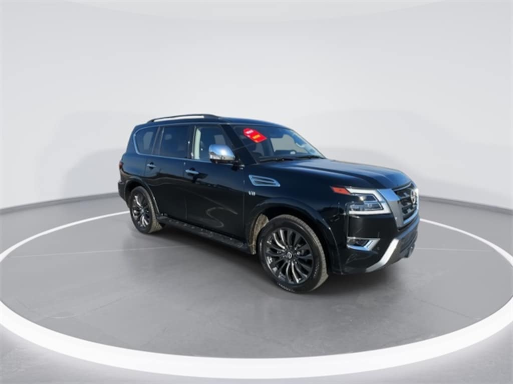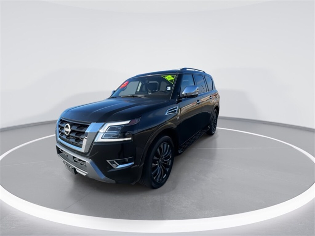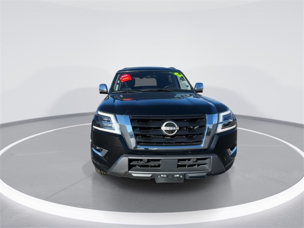 1 Owner, Nissan Certified, 2nd Row Captain's Chairs, 2nd Row Center Console w/Padded Armrest, Automatic temperature control, Brake assist, Captain's Chairs Package, Electronic Stability Control, Front dual zone A/C, Fully automatic headlights, Navigation System, Power Liftgate, Power moonroof, Radio: NissanConnect w/SiriusXM, Steering wheel mounted audio controls, 13 Speakers, 2.94 Axle Ratio, 3rd Row Carpeted Floor Mats - Captain Seat, 3rd row seats: split-bench, 4-Wheel Disc Brakes, A/V remote, ABS brakes, Air Conditioning, Alloy wheels, AM/FM radio: SiriusXM, Anti-whiplash front head restraints, Auto High-beam Headlights, Auto tilt-away steering wheel, Auto-dimming door mirrors, Auto-dimming Rear-View mirror, Auto-leveling suspension, Bumpers: body-color, Climate-Controlled Front Bucket Seats, Delay-off headlights, Driver door bin, Driver vanity mirror, Dual front impact airbags, Dual front side impact airbags, Emergency communication system: NissanConnect Services, Exterior Parking Camera Rear, Four wheel independent suspension, Front anti-roll bar, Front Bucket Seats, Front Center Armrest, Front fog lights, Front reading lights, Garage door transmitter: HomeLink, Headphones, Heated door mirrors, Heated front seats, Heated rear seats, Heated steering wheel, Illuminated entry, Illuminated Kick Plates, Illuminated Scuff Plate, Knee airbag, Leather Shift Knob, Low tire pressure warning, Memory seat, NissanConnect featuring Apple CarPlay and Android Auto, Occupant sensing airbag, Outside temperature display, Overhead airbag, Overhead console, Panic alarm, Passenger door bin, Passenger vanity mirror, Power door mirrors, Power driver seat, Power passenger seat, Power steering, Power windows, Quilted Leather Seat Trim, Rain sensing wipers, Rear air conditioning, Rear anti-roll bar, Rear reading lights, Rear seat center armrest, Rear window defroster, Rear window wiper, Reclining 3rd row seat, Remote keyless entry, Roof Rail Cross Bars, Security system, Speed control, Speed-sensing steering, Speed-Sensitive Wipers, Split folding rear seat, Spoiler, Steering wheel memory, Tachometer, Telescoping steering wheel, Tilt steering wheel, Traction control, Trip computer, Turn signal indicator mirrors, Variably intermittent wipers, Ventilated front seats, Voltmeter, Welcome Lighting, Wheels: 22" x 8J Machine-Faced w/Tinted Clear Coat, Loaded, 2nd Row Captain's Chairs, 2nd Row Center Console w/Padded Armrest, Automatic temperature control, Brake assist, Captain's Chairs Package, Electronic Stability Control, Front dual zone A/C, Fully automatic headlights, Navigation System, Power Liftgate, Power moonroof, Radio: NissanConnect w/SiriusXM, Steering wheel mounted audio controls.